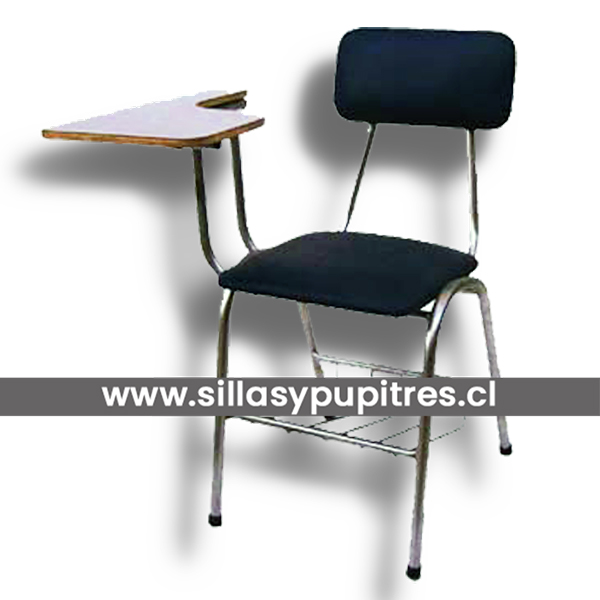 Silla tapizada universitaria con paleta fija de alta durabilidad y seguridad. Tapiz cómodo y resistente. Mobiliario diseñado para colegios, institutos, centros de formación técnica, universidades, salas de capacitación, auditorios, empresas y todo tipo de instituciones educacionales. 2 años de garantía por defectos de soldadura.